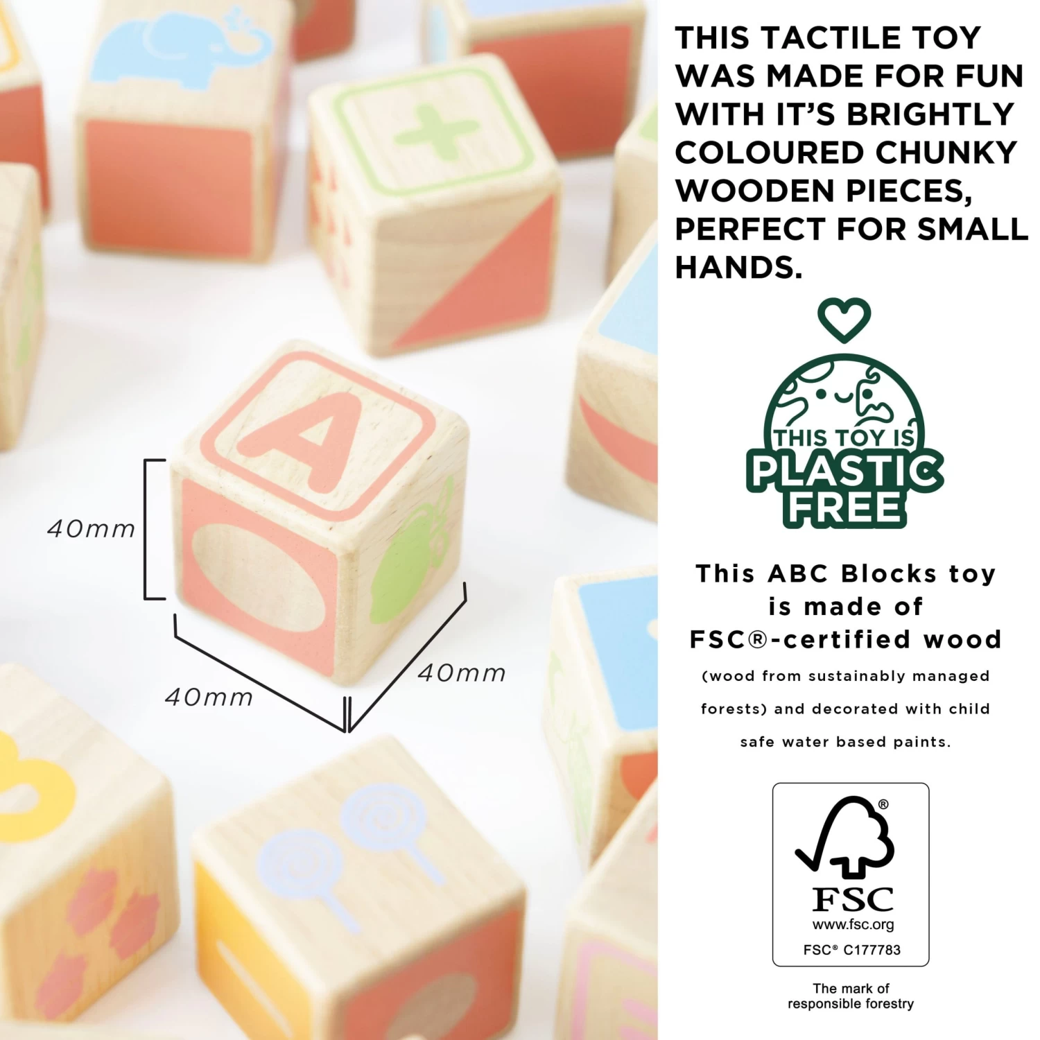 - Plastic free toy – made from sturdy, sustainable wood