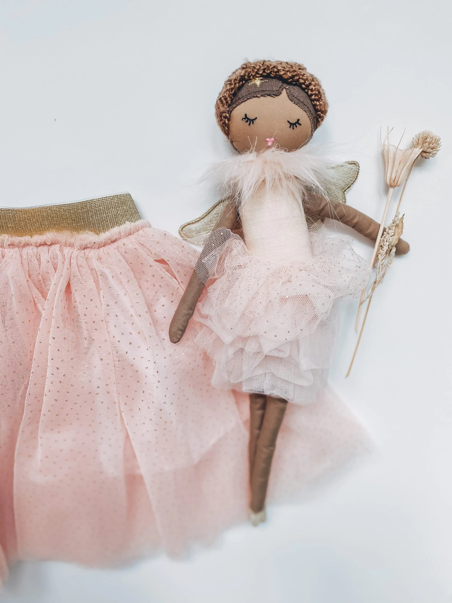 Meet Ada, the angel doll, your little one’s new best friend! This elegant, stuffed doll is unbelievably soft and designed with exquisite detail, making her the perfect gift for any little girl. Ada comes ready to watch over your little one in a tulle dress with gold sparkle wings. As a birthday or holiday gift, this angel doll will be cherished for years to come.Â