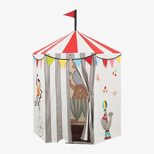 Constructed of 100% Cotton fabric with a metal frame, our Role Play™ Circus Tent Playhouse is quick and simple to assemble without the need of any tools, and comes equipped with 3 juggling clubs to instantly facilitate imaginative play.