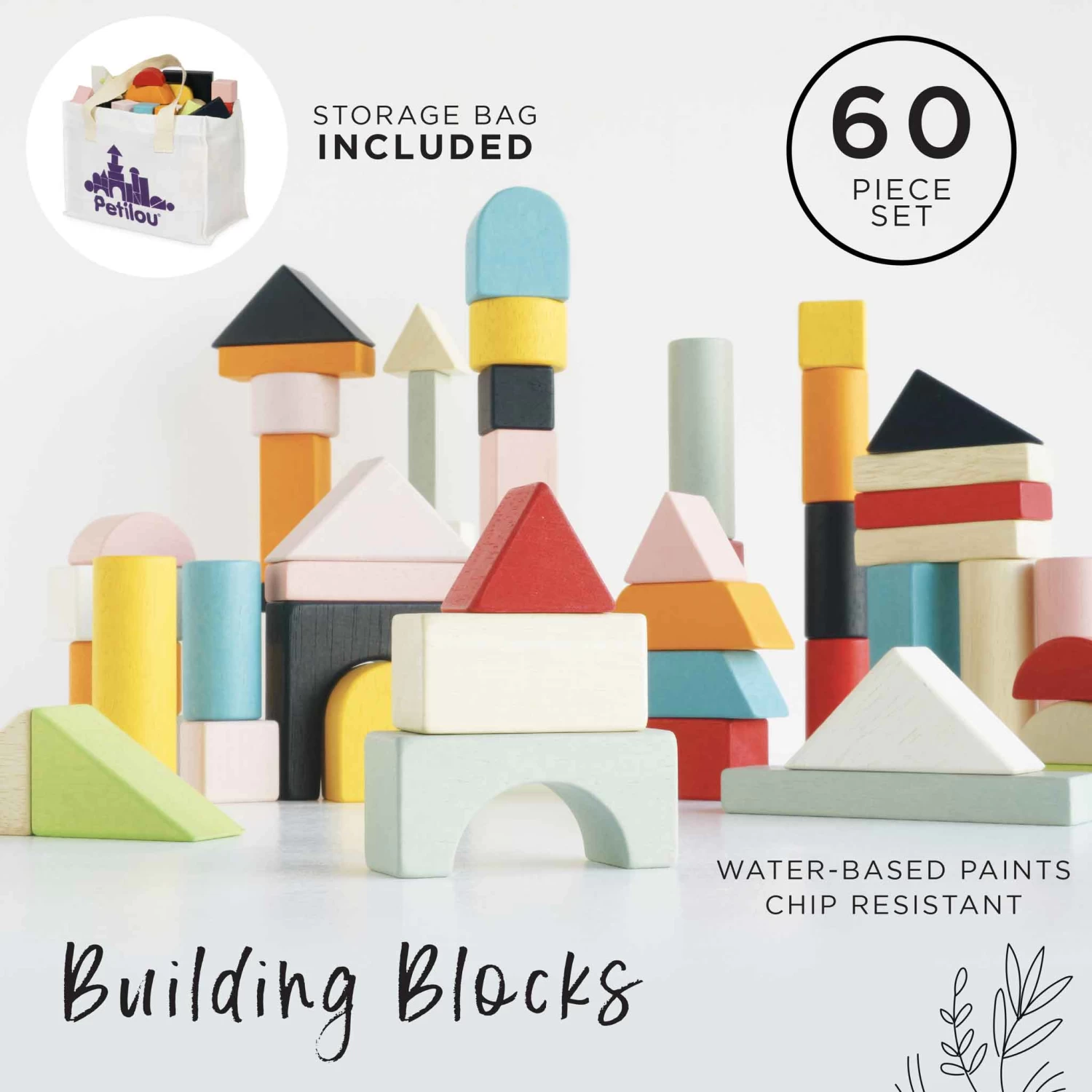A timeless classic. Build an imaginary world with this amazing 60-piece wooden building blocks set.