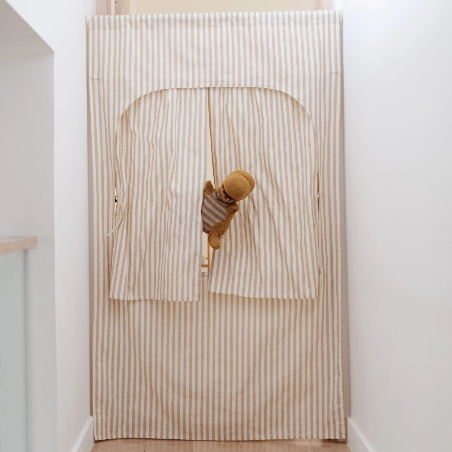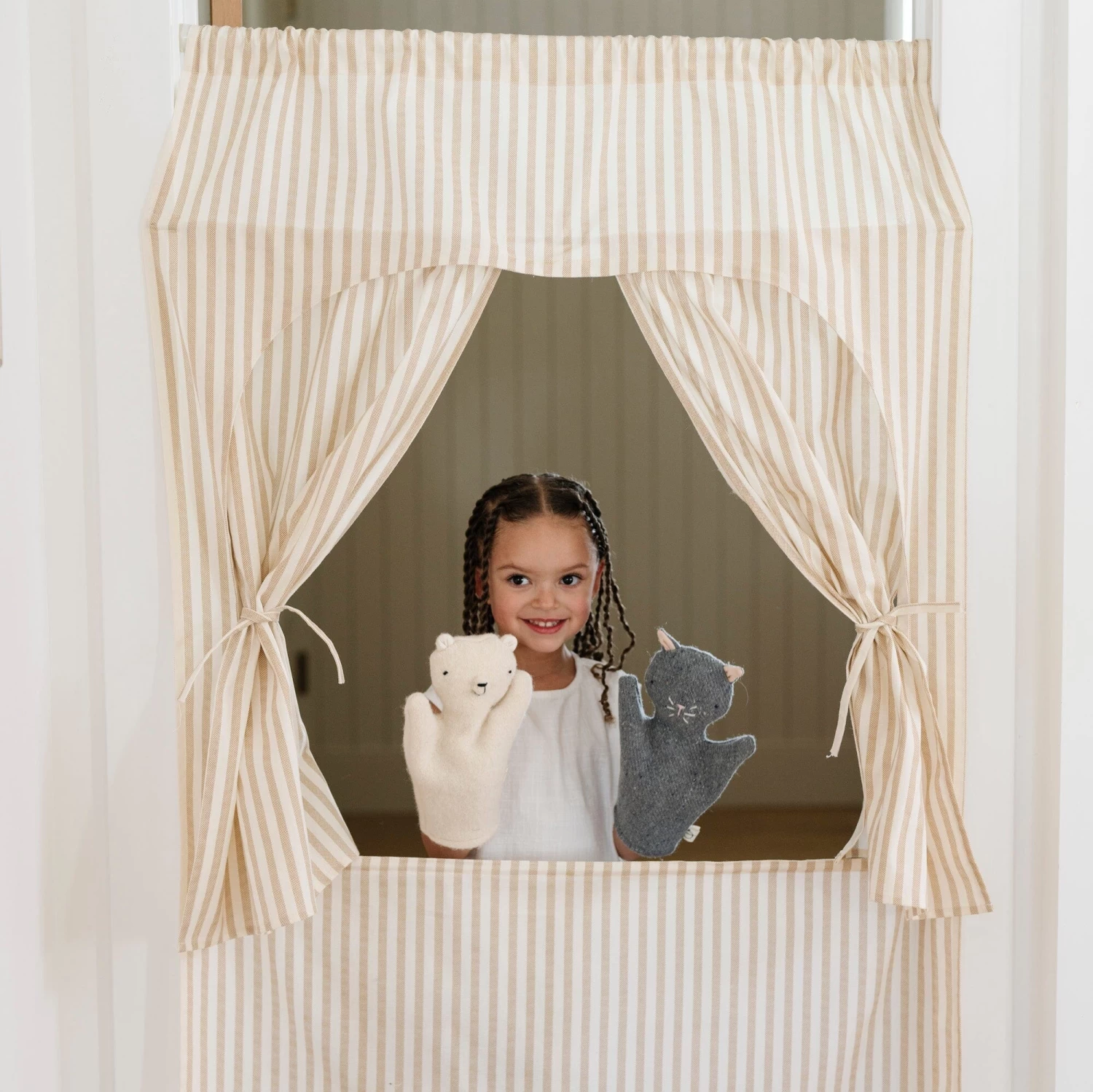 Draw the curtain on imaginative play with dolls, sock puppets, and storybooks.
