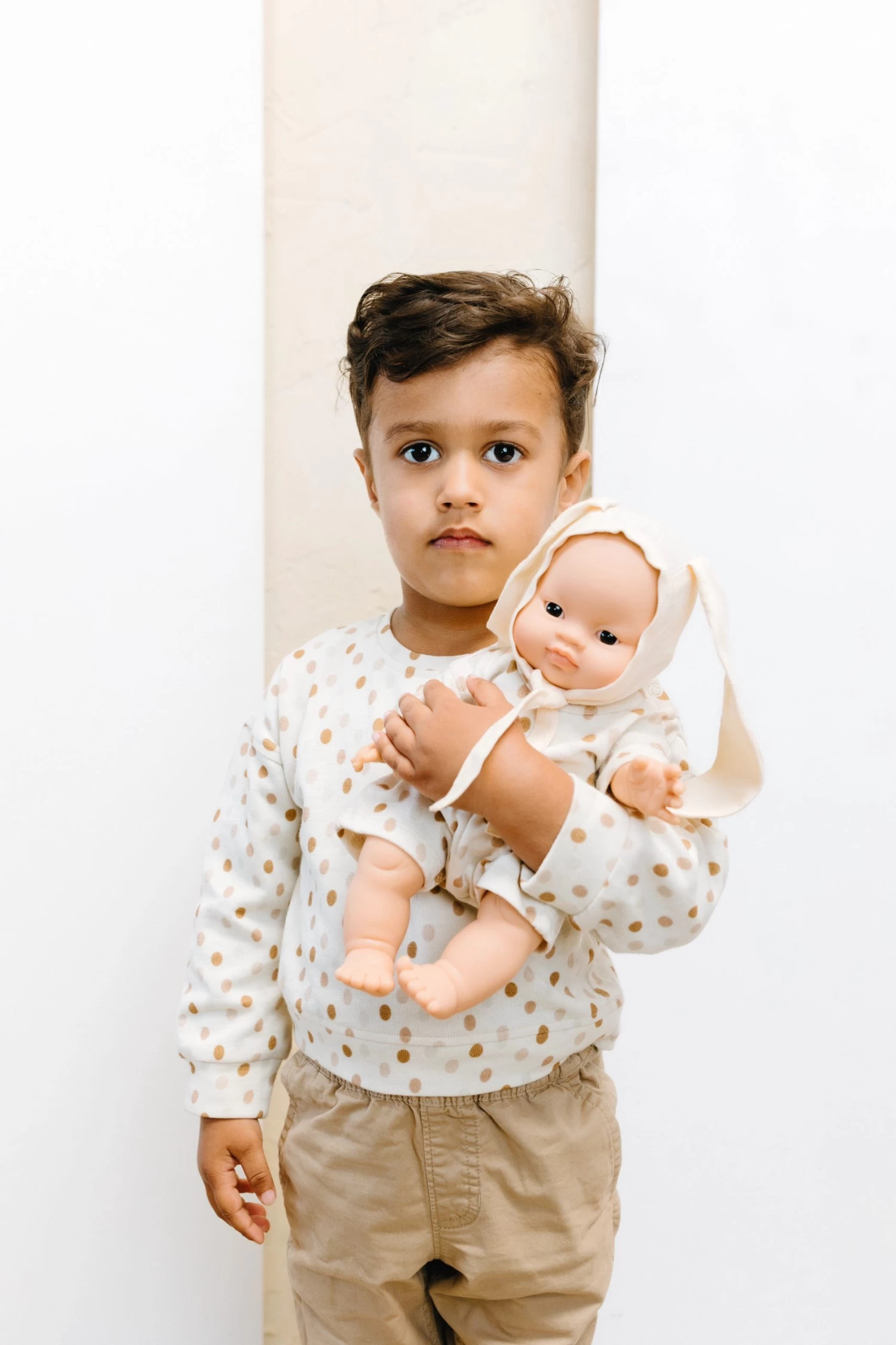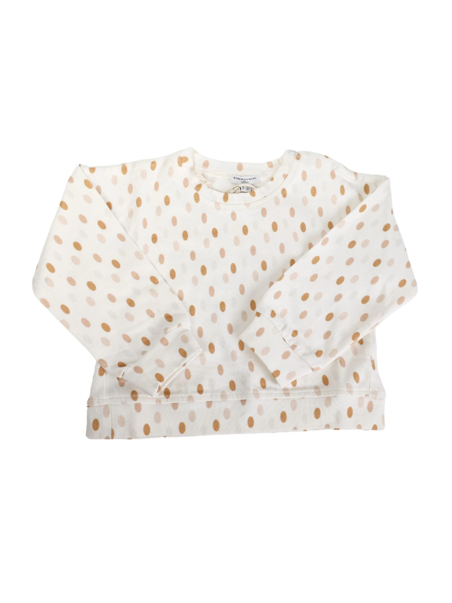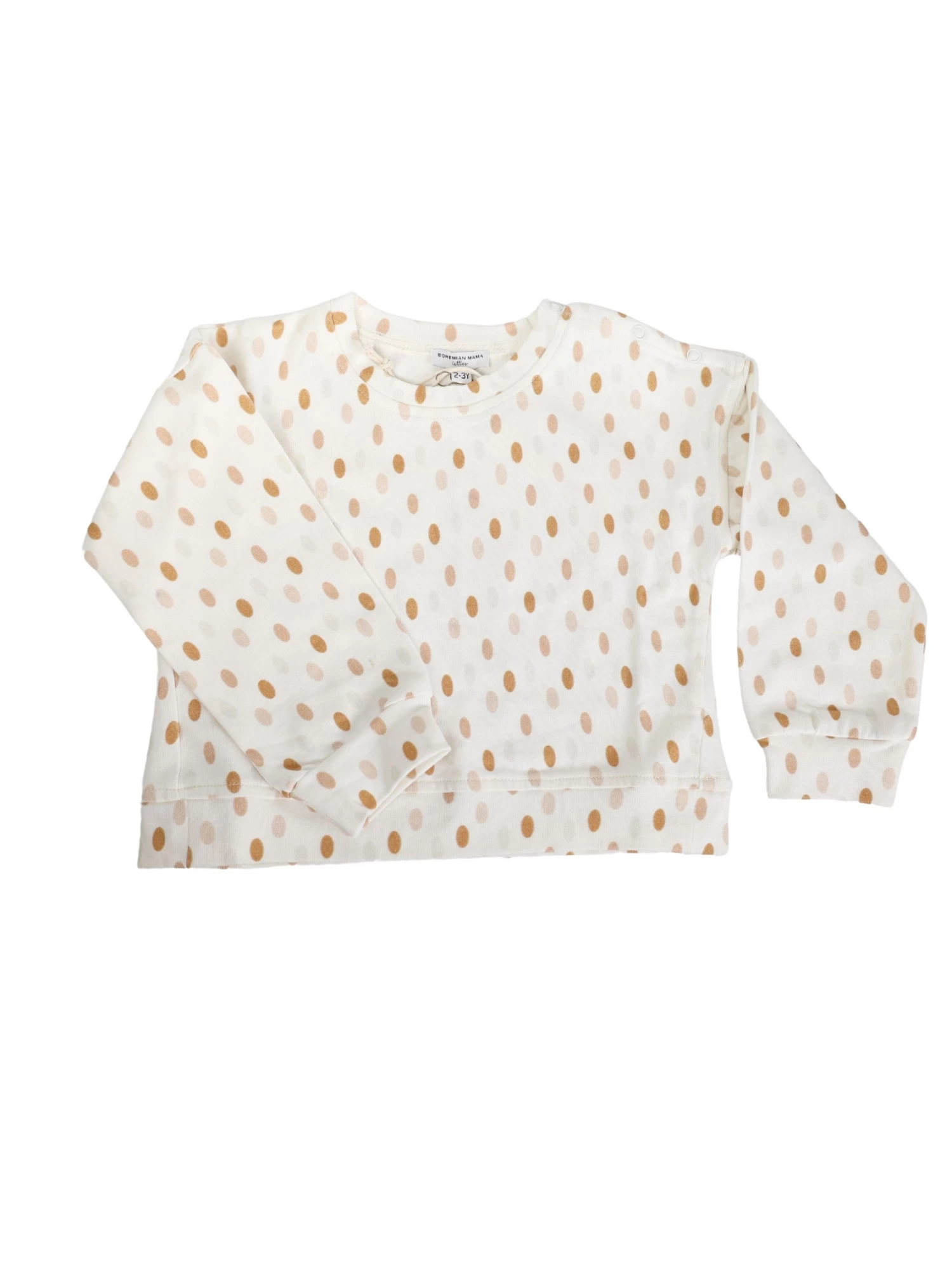 Check out our littles organic cotton crew neck shirt. Perfect for Easter and Spring in a unisex egg dot print. Additional details include a shoulder snap placket, sleeve and hem cuffs.