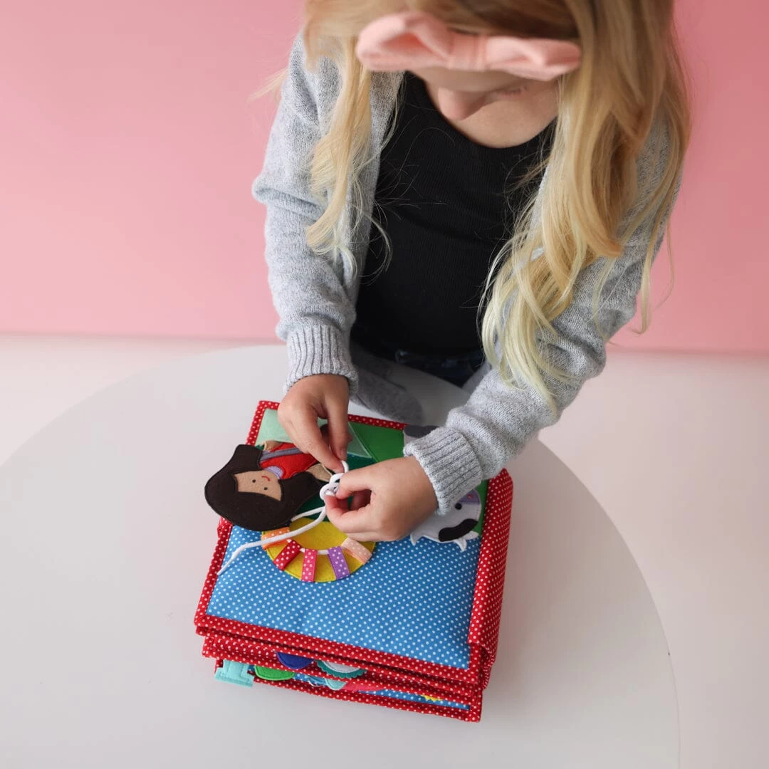 Crafted from a premium cotton blend and OEKO-TEX® felt, our quiet book exemplifies heirloom quality through 100% sewn craftsmanship.