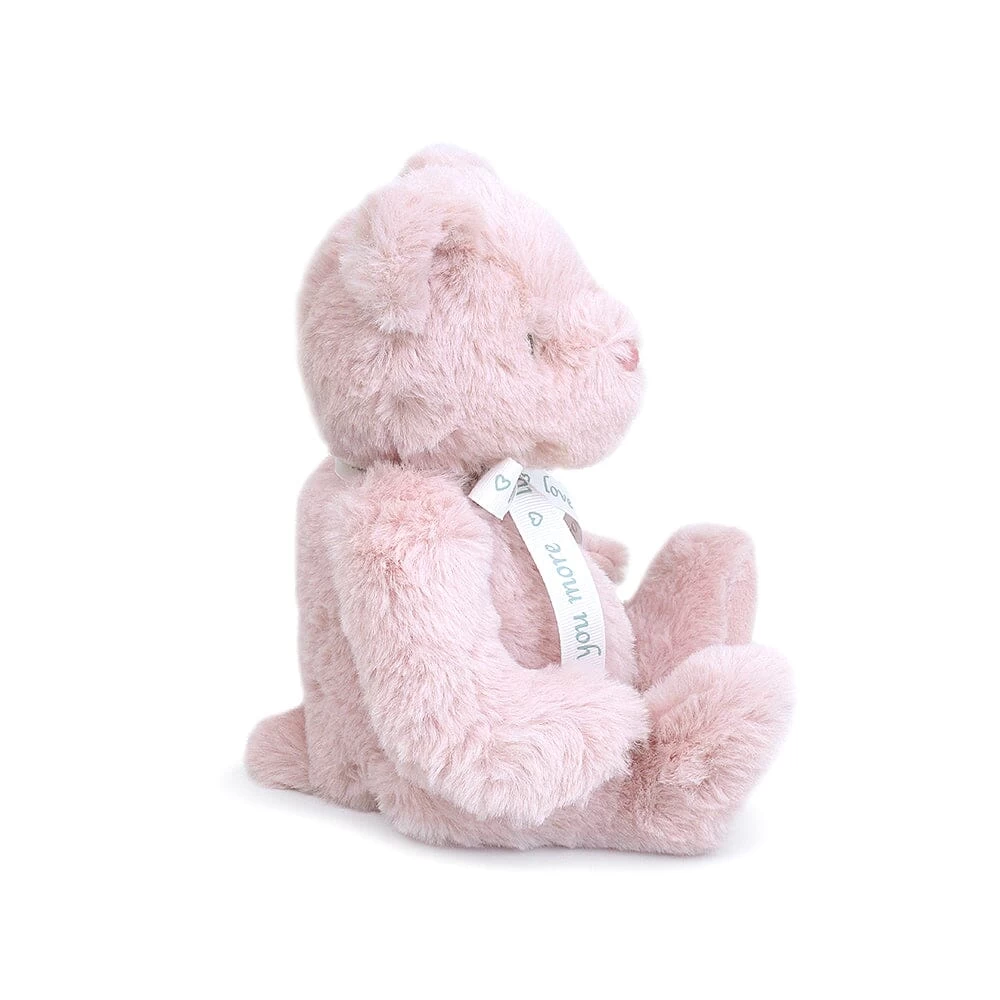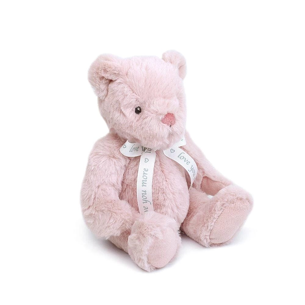 MON AMI’s heirloom Love U Bear says it all…”Love You More” is inscribed on a satin ribbon bow as an endearing sentiment! Love U Bear comes in cream, gray or pink in our signature lux plush with an adorable embroidered face. So sweet and cuddly, Love U Bear is ready to snuggle, hug and love!