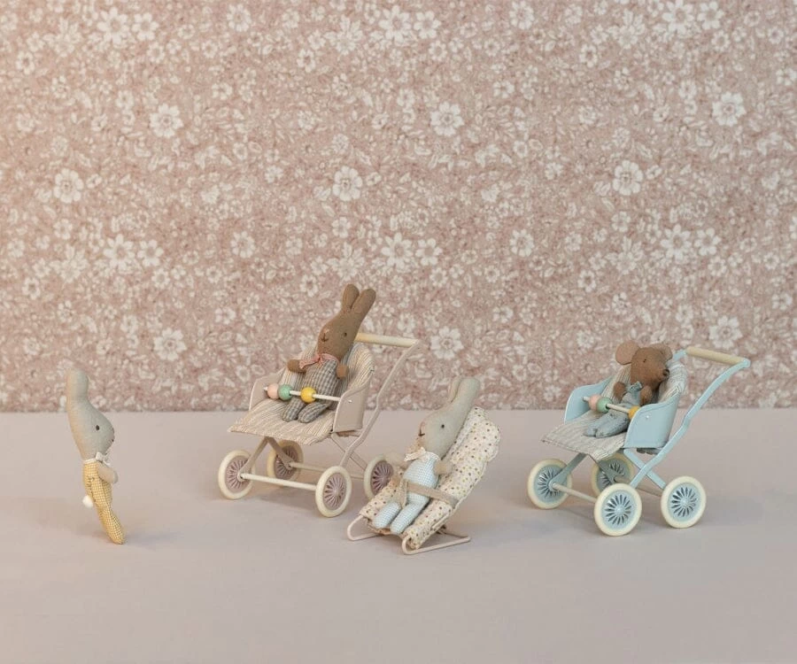 This stroller is perfect for mouse families with more than one baby. You can easily transport two or three babies. The seat can be positioned both ways depending on whether the babies like to look at mum and dad or are ready to discover the worl