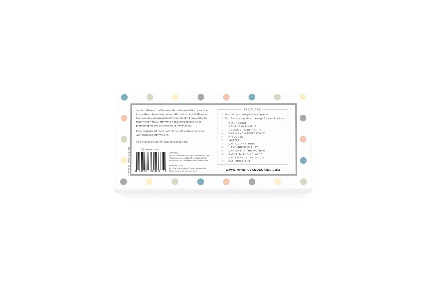 - Inspire self-love, confidence and positive self-talk in your little love with our beautifully crafted affirmation pencils. Designed to encourage moments of calm, your child will love colouring their world with our affirmation colouring pencils, while promoting the endless benefits of mindfulness.