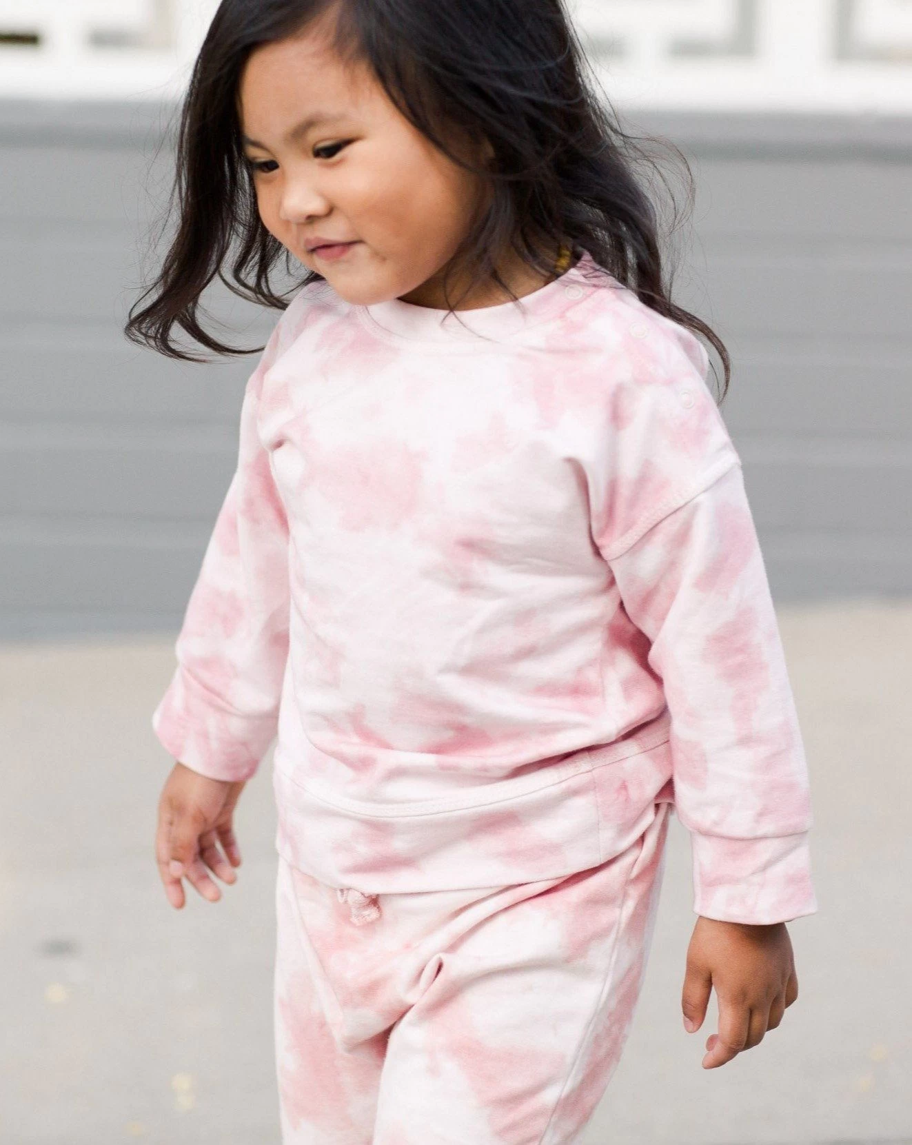 Kids will love our comfy Organic Crew Neck Sweatshirt – Pink Sand! Tie-dyed with easy shoulder snap closure. Complete your perfectly cute outfit with the matching Harem. Nail down that sweet mommy & me look our matching Cropped Off-Shoulder Organic sweatshirt for women!