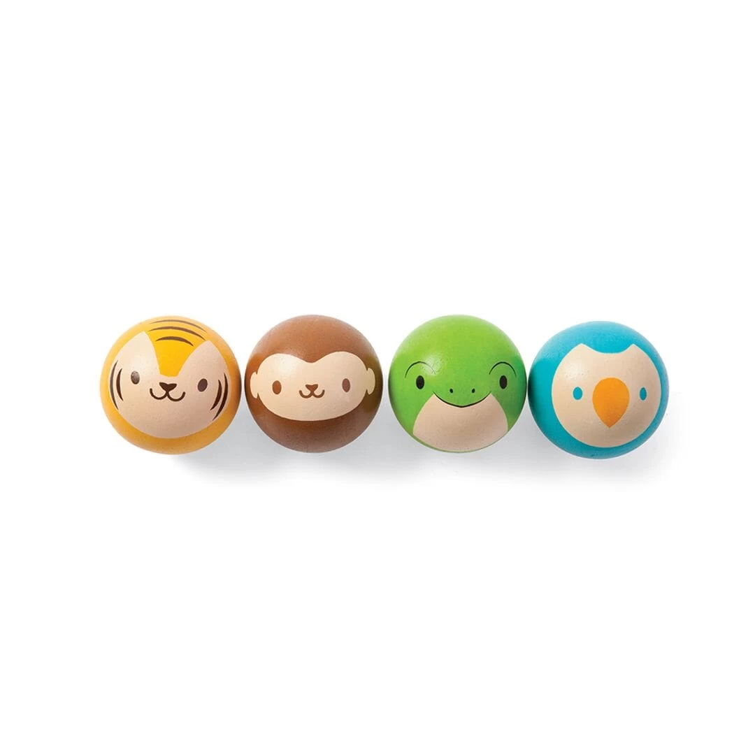 - Includes 4 different wooden animal balls (bird, tiger, monkey and frog), 2 mallets, 4 wickets, bag and a stand