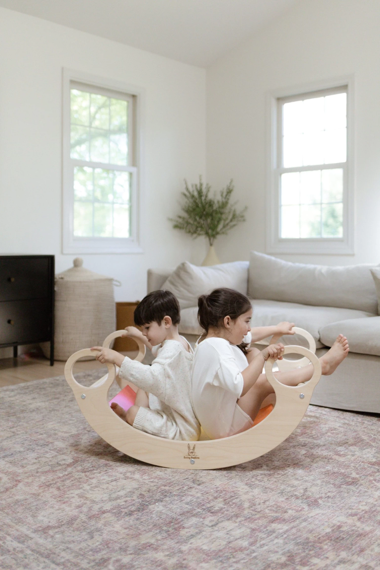 As your child rocks back and forth on this Montessori-inspired Climber Arch, they will develop their balance, coordination, and gross motor skills. The curved base allows for a gentle, rhythmic, calming, soothing motion for your little one.