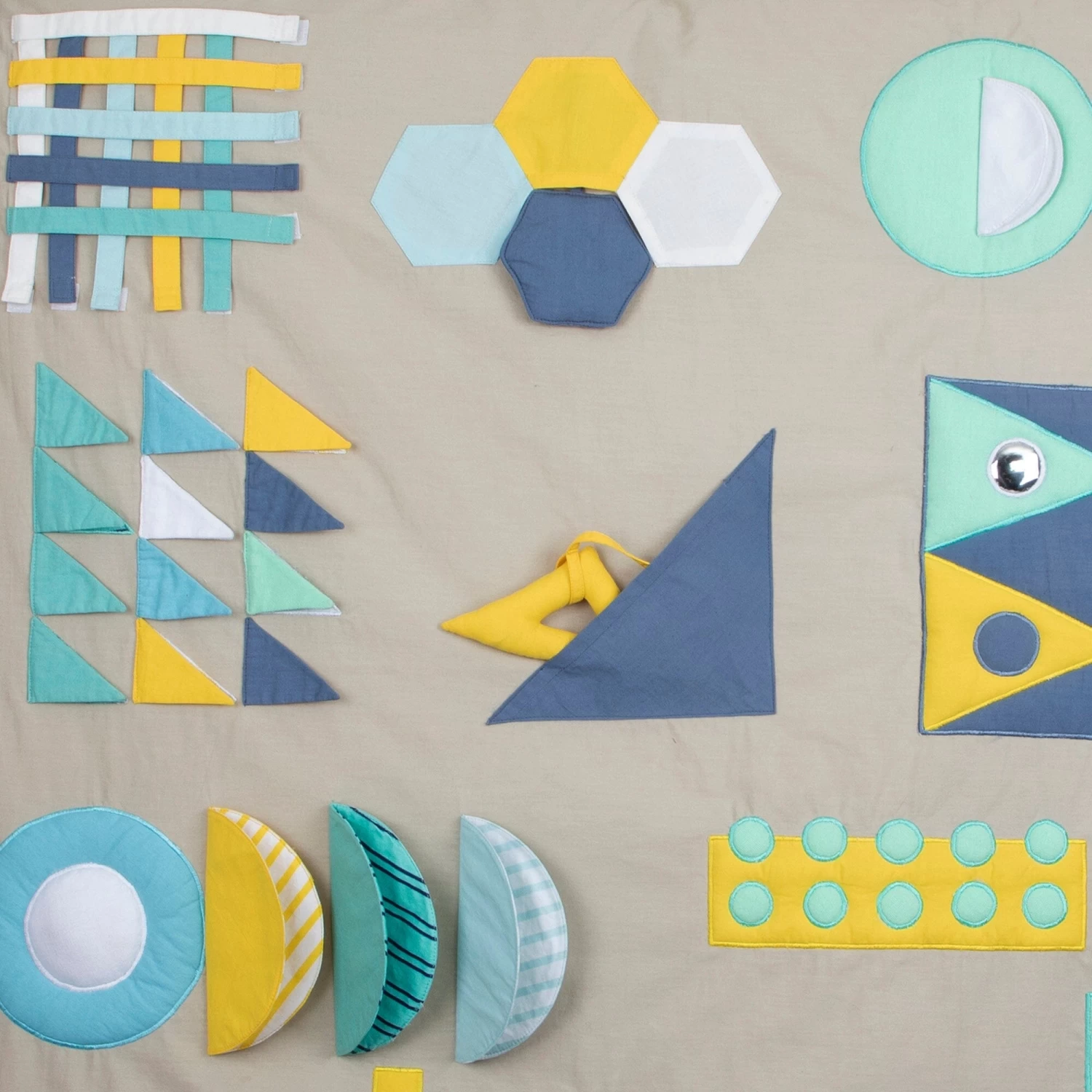 This interactive playmat is designed for both playtime and tummy time. Featuring diverse fabrics, stimulating elements like a mirror, rattle, crinkle paper, and squeakers, it is sure to capture the curiosity of your little one. Its gender-neutral colors are perfect for a nursery, and the cotton/linen blend promises comfort and durability. An ideal present for any infant